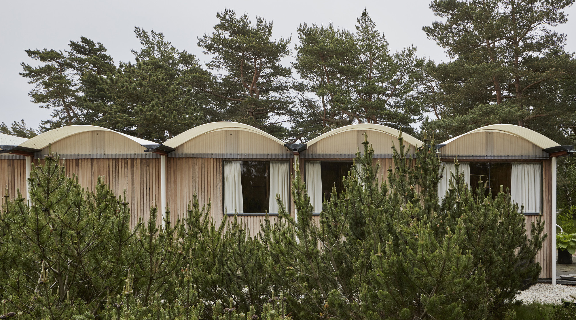 Feuchte Luft hängt über der Region Hallands. Eine Kiefer erstreckt sich über die Glasfront und fängt schüchtern die Sonnenstrahlen ein. Mitten in den Waldlandschaften und meilenweiten Sandstränden ruht ein Künstlertraum an der schwedischen Westküste, strategisch versteckt zwischen den Bäumen. Das bald 60 Jahre alte Haus gehörte dem ikonischen Möbeldesigner und Architekten Bruno Mathsson und seine Seele scheint immer noch hier zu verweilen.
