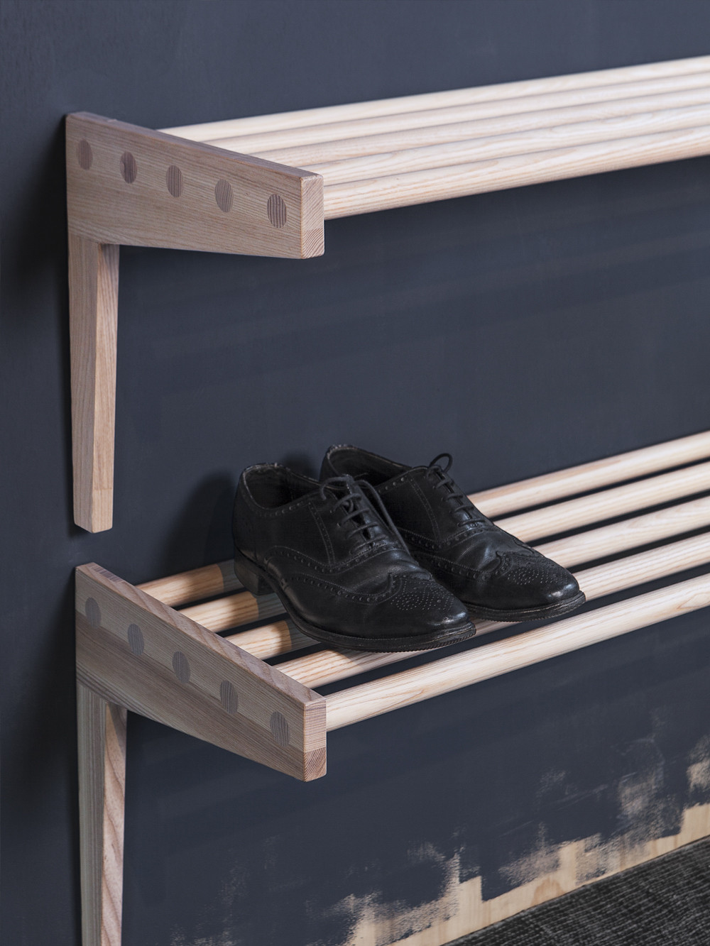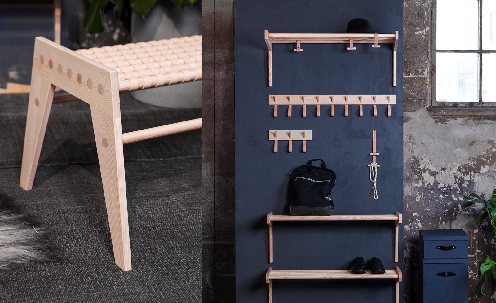 Die für die Eingangshalle bzw. den Flur konzipierte Kollektion besteht aus sieben Produkten. Die Produktfamilie reicht von kleinen Wandhaken bis hin zu größeren Möbeln. Alle Produkte werden aus den Rohstoffen Esche und Leder gefertigt, die in einer nachhaltigen Produktion in Tärnsjö, Schweden, hergestellt werden. Die Fertigung erfolgt in der Nähe unserer geografischen Wurzeln in Småland.