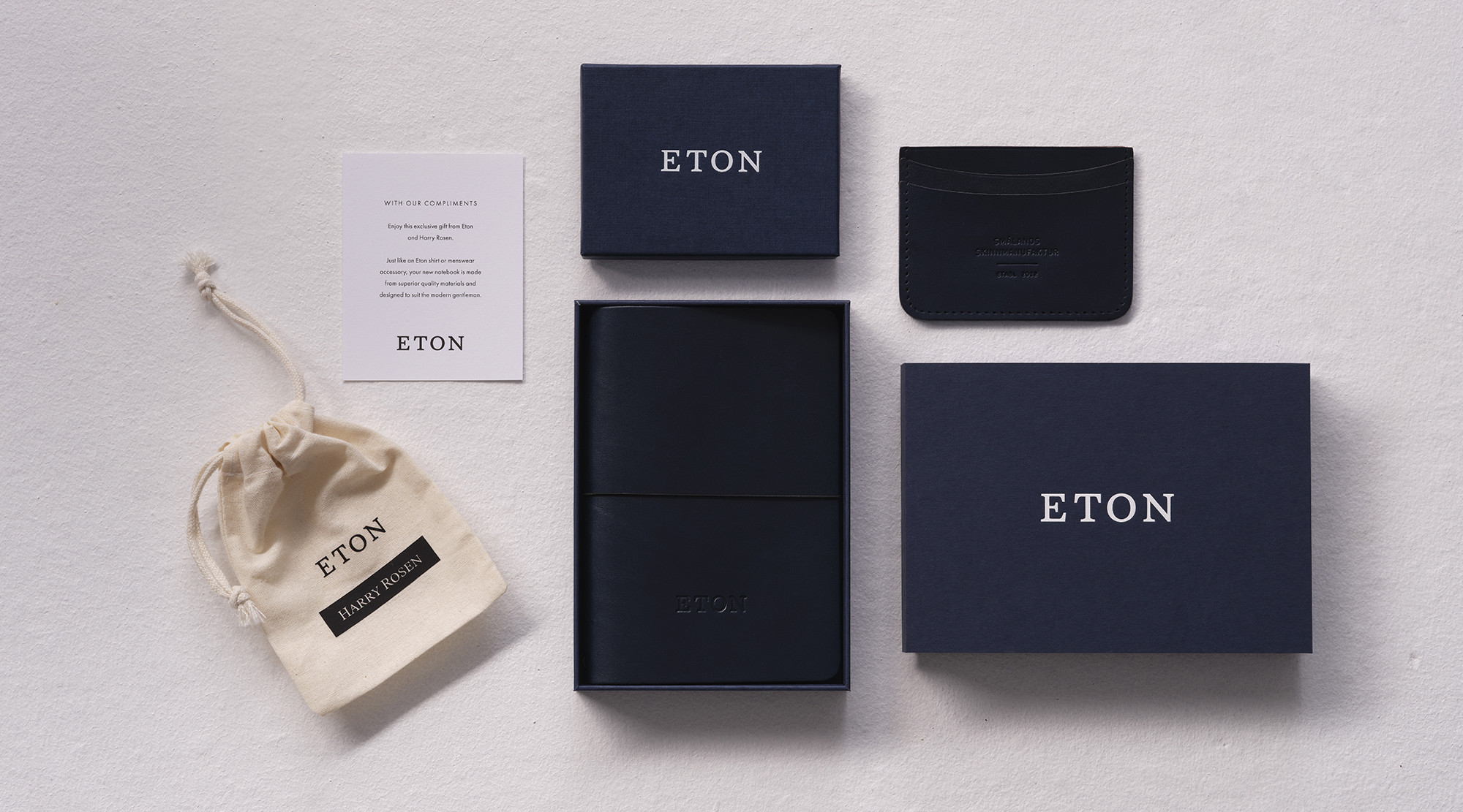 Produkt: Kortfodral och etui med block i mörkblått skinn.